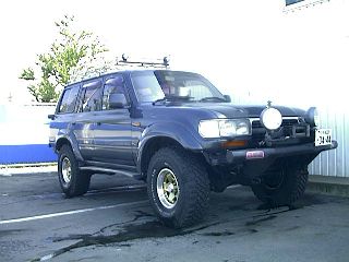 ■MYランドクルーザー80についに35インチタイヤ履かすことが出来ました。H2年(前期型)2インチアップに、35/12.5/R15八部山、BFグッドリッチMT、ホイルはメーカーBS、8JR15オフセット+5、という組み合わせのものをオークションでゲット、収まるかどうか心配もありましたが無事収まりまして、ちょこっと足を動かしてみましたが、タイヤハウスに擦れる事も無くひとまず安心しました。オーバーフェンダーと比べるとまだ余裕が有りますので、オフセットマイナス10位までなら収まるかもしれません。ちなみにオーバーフェンダーは勿論純正です。走行距離117890kmFJ80G