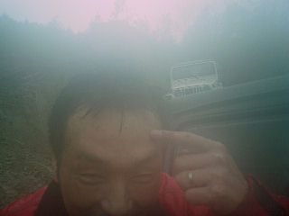 横転の拍子に、工具がおでこに落下して負傷(笑)流血