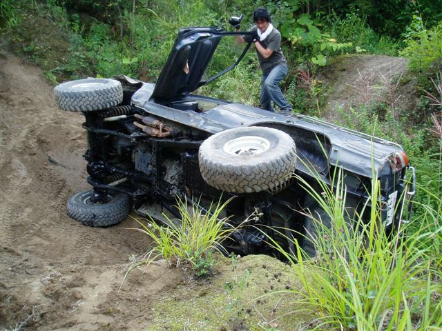 どこが凹んだか分かりません。ガラスも無事だし、ミラーもひび入っただけで残ってます。(笑)